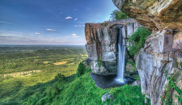 This scenic, expansive view atop Lookout Mountain shows Chattanooga and surrounding areas in all their beauty. Minutes from downtown, with a historic railway and waterfall close by, Lookout Mountain is a top destination in Chattanooga.
